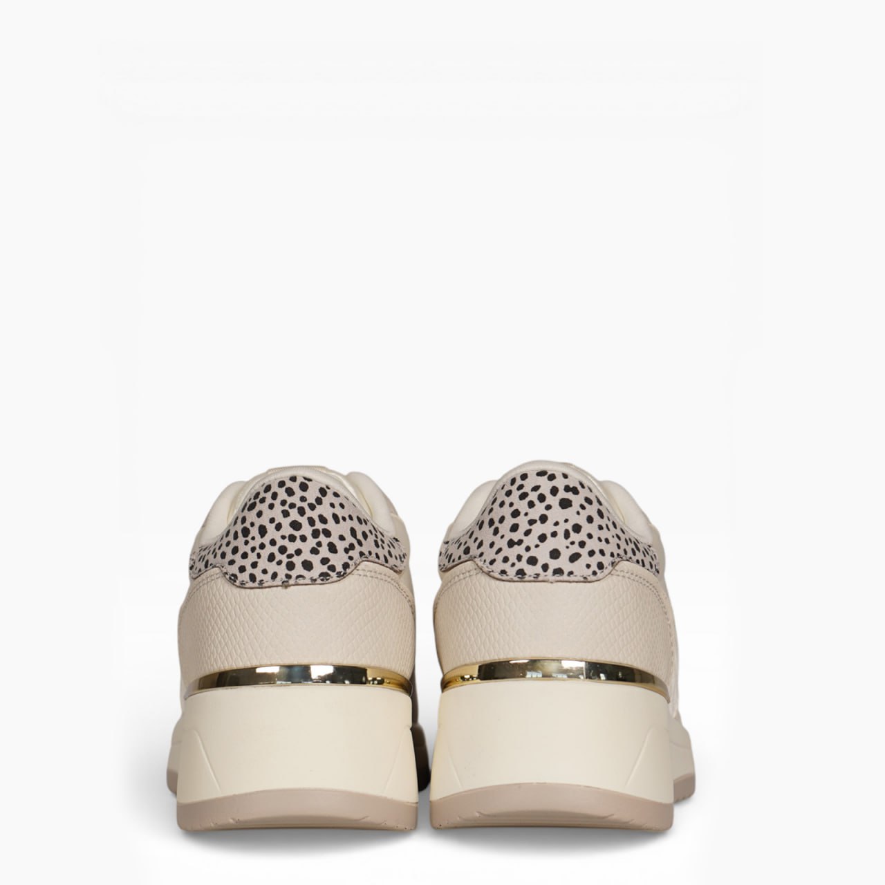 Conçue avec un mélange de matières texturées effet cuir et tissu, elle offre un rendu premium et sophistiqué. Sa semelle épaisse compensée assure un excellent confort de marche tout en apportant quelques centimètres supplémentaires pour élancer la silhouette. Les détails raffinés, comme l’empiècement arrière à motif et la finition soignée, ajoutent une touche mode irrésistible.