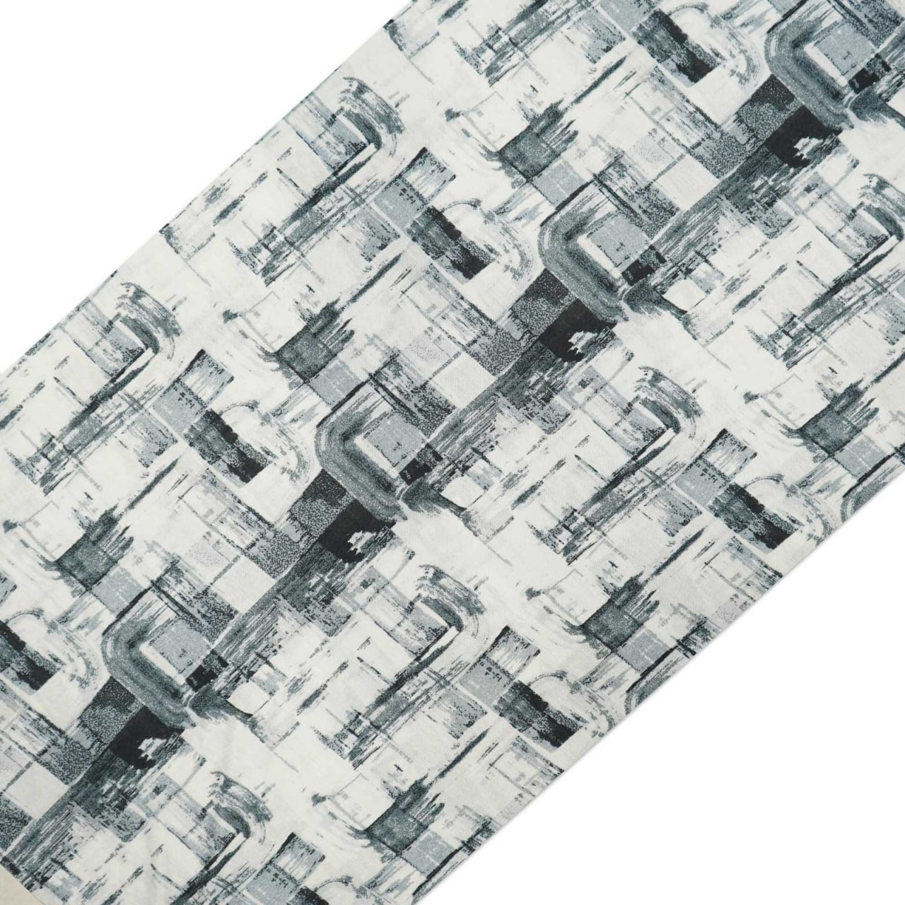 Ce châle élégant pour femme présente un motif géométrique moderne avec des touches de gris foncé, gris claire et blanc, idéal pour ajouter une touche de style chic à vos tenues quotidiennes.