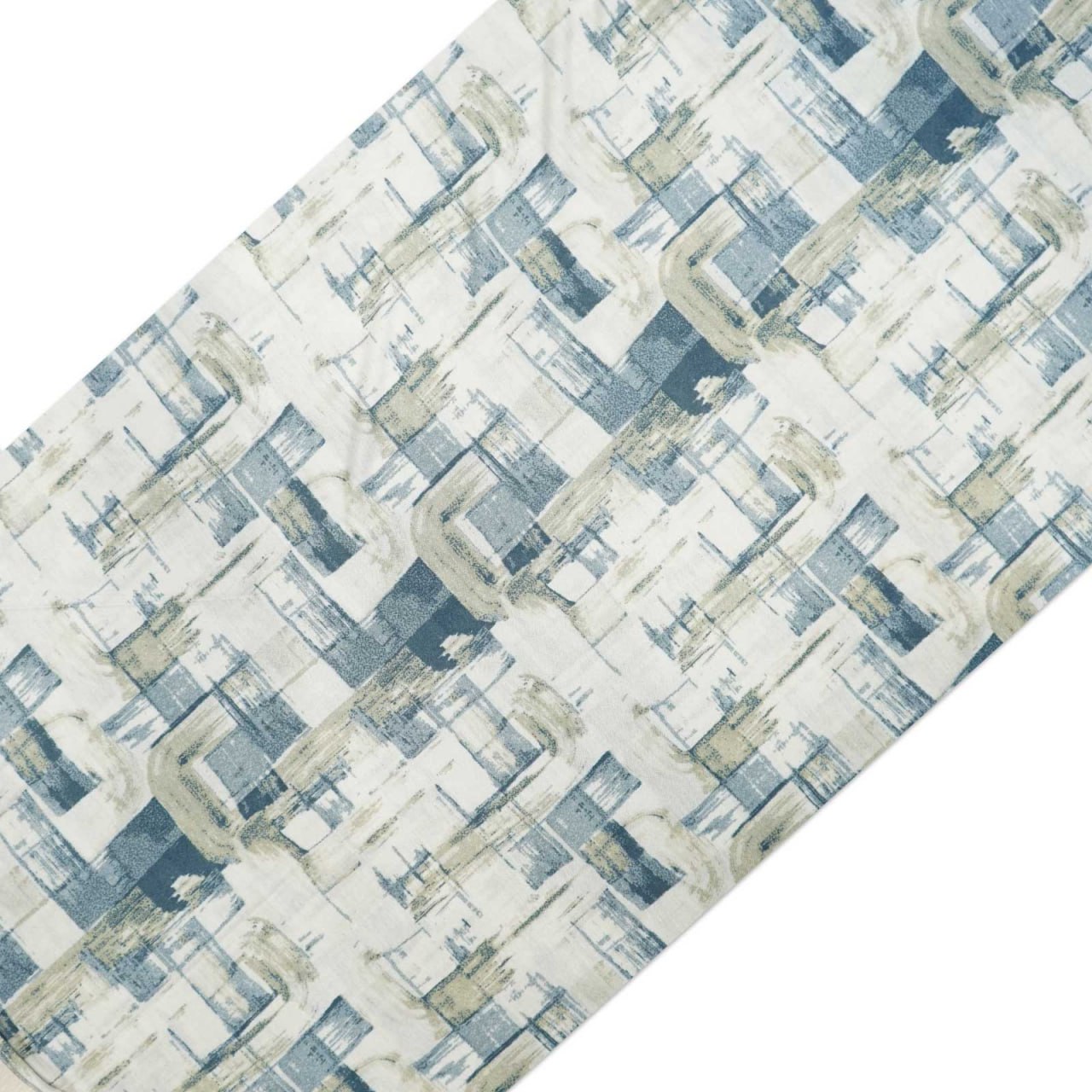 Ce châle élégant pour femme présente un motif géométrique moderne avec des touches de bleu, beige et blanc, idéal pour ajouter une touche de style chic à vos tenues quotidiennes.