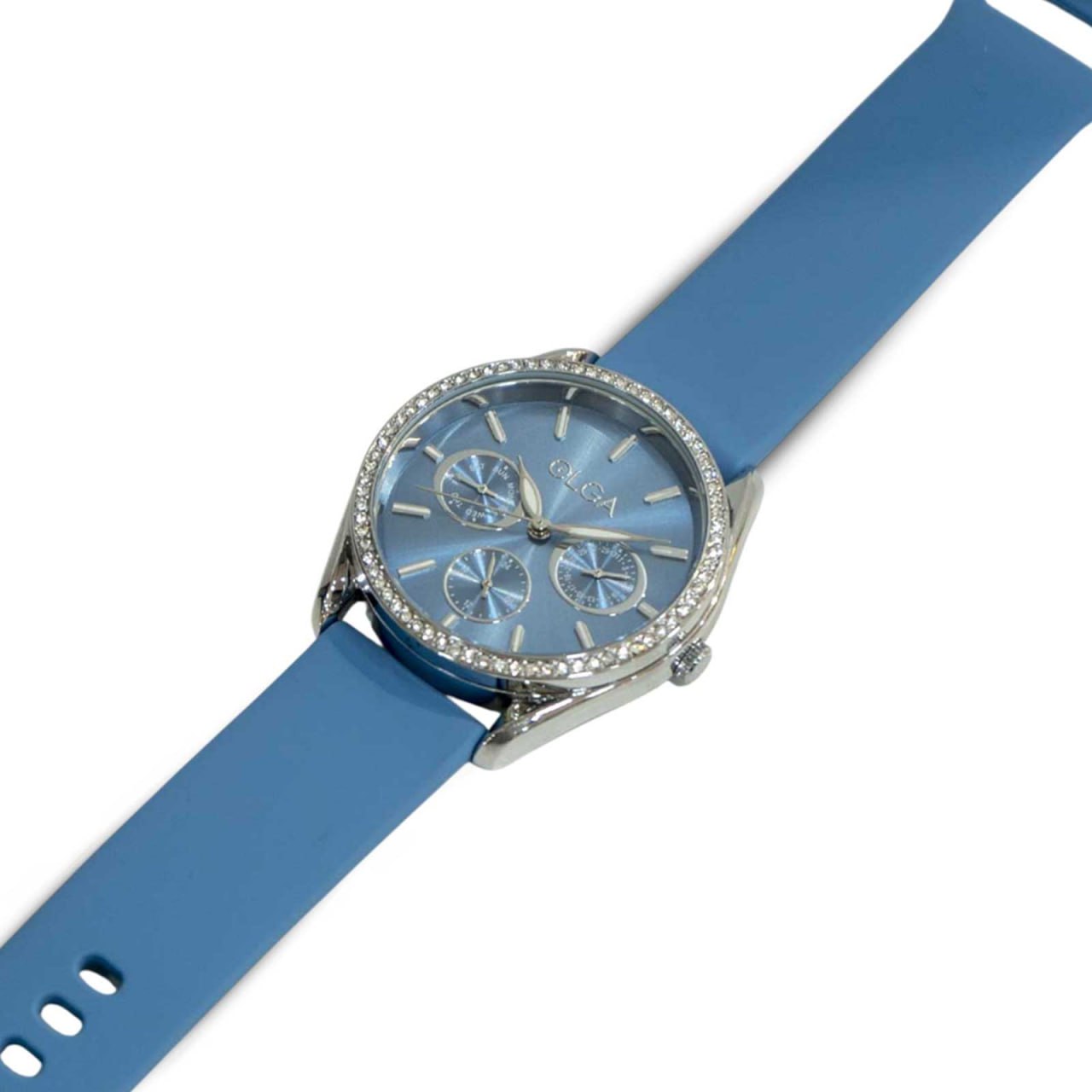 Affirmez votre style avec la montre femme OLGA Éclat, une pièce à la fois chic et contemporaine. Son bracelet bleu au ton chaud et raffiné s’associe parfaitement à son cadran orné de strass étincelants, pour un look à la fois élégant et tendance.