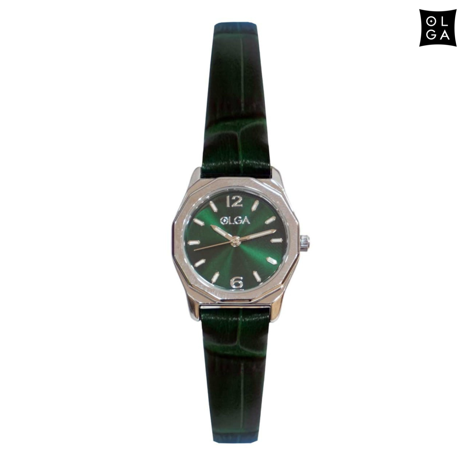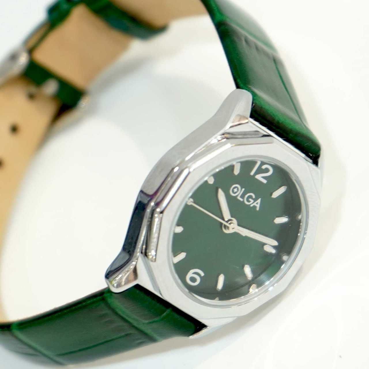Dotée d’un cadran vert minimaliste, elle met en valeur la finesse du poignet tout en offrant un look moderne et sophistiqué.