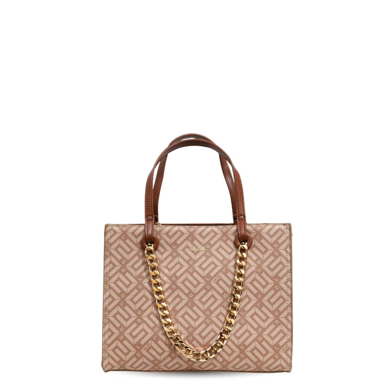 Découvrez ce sac à main femme tendance au design moderne, idéal pour compléter vos tenues du quotidien. Conçu avec un motif géométrique chic et orné d’une chaîne dorée élégante, ce sac combine parfaitement style et fonctionnalité. Ses anses en cuir marron apportent une touche raffinée et une excellente durabilité. Grâce à sa bandoulière réglable, il peut être porté à la main ou en crossbody pour un confort optimal.