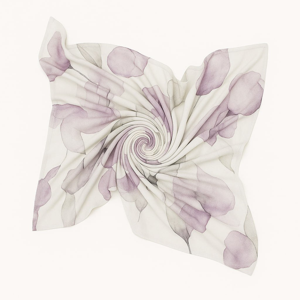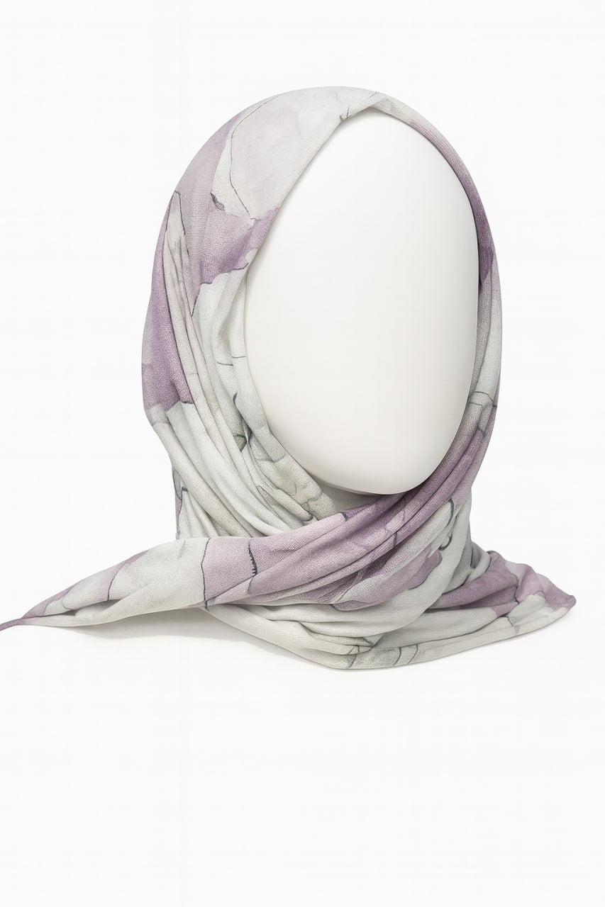 Ce châle en lycra incarne l’alliance parfaite entre élégance moderne et confort absolu. Son motif artistique aux nuances de violet clair et de blanc apporte une touche de sophistication à toutes vos tenues.