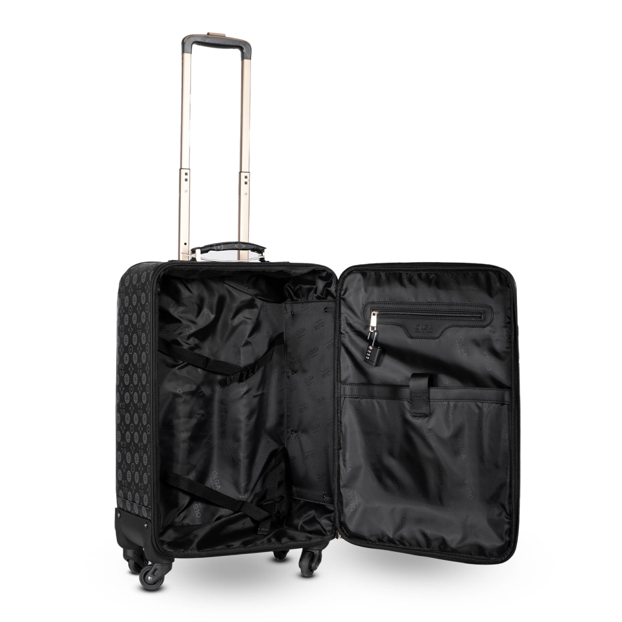 Son intérieur spacieux est doté de compartiments doublés, sangles de maintien et poche zippée, permettant une organisation pratique de vos vêtements et accessoires. La fermeture zippée sécurisée avec cadenas intégré garantit une sécurité maximale pendant vos voyages.