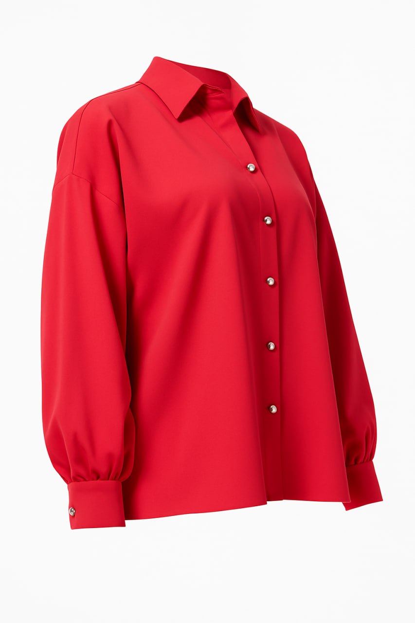 Les manches longues légèrement bouffantes avec poignets ajustés ajoutent une note féminine et tendance. Facile à assortir, cette chemise rouge est parfaite pour un look chic au bureau, une tenue casual élégante ou une sortie habillée.