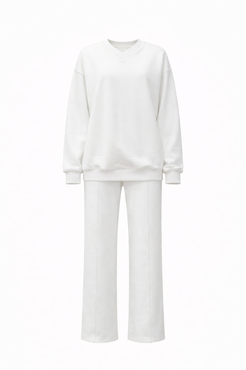 Adoptez un style à la fois chic, moderne et confortable avec cet ensemble femme composé d’un sweat à col V et d’un pantalon large assorti. Conçu dans une matière douce et agréable au toucher, cet ensemble est idéal pour un usage quotidien, les moments de détente ou les sorties casual.