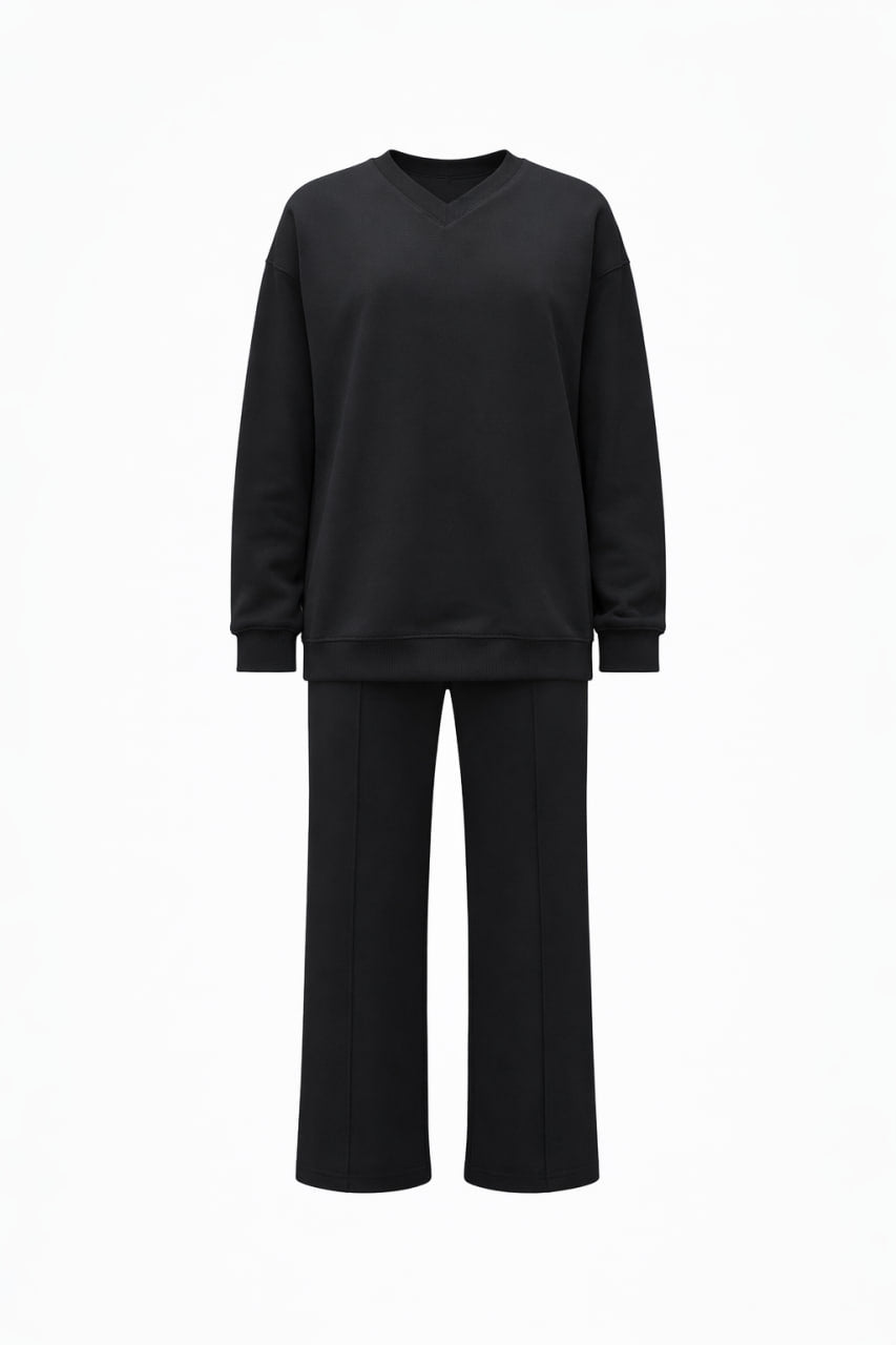 Adoptez un style à la fois chic, moderne et confortable avec cet ensemble femme composé d’un sweat à col V et d’un pantalon large assorti. Conçu dans une matière douce et agréable au toucher, cet ensemble est idéal pour un usage quotidien, les moments de détente ou les sorties casual.